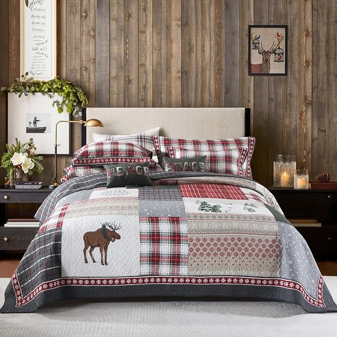 Experience the ultimate comfort with the Secgo Embroidery Queen Comforter Set. Made from 100% cotton, this red and gray quilt features an exclusive embroidered print design with elegant deer motifs, providing a cozy haven throughout the year.